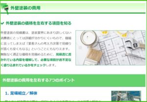 外壁塗装の一括査定サイトとして実績ある「セレクトナビ」、1回の入力で複数社の見積がとれるのは当然のことですが、とれた見積書のどこをどのように見るべきかというチェックポイントまでも分かるサイトです。